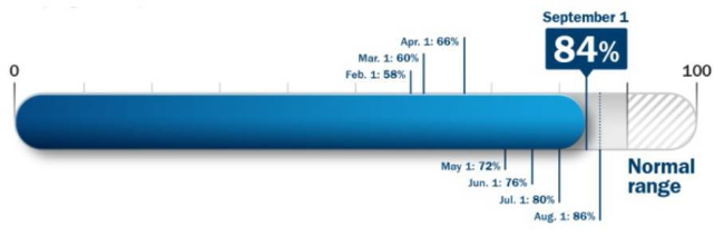 Grafik: Entwicklung es „Return to Normal“ Index von Februar bis September 2021