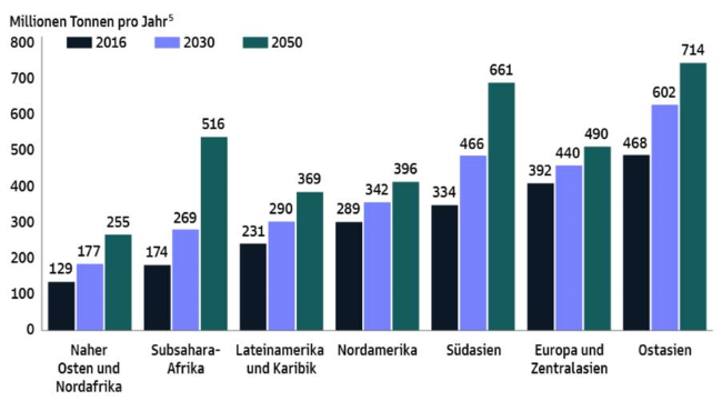 GRAFIK 2: PROGNOSTIZIERTE MÜLLPRODUKTION NACH REGION[5]