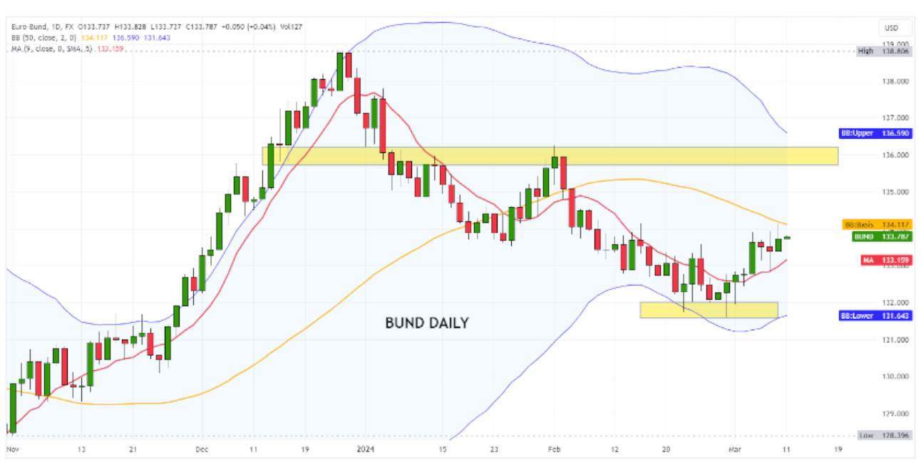Der Bund-Future, der Ende Februar auf unter 131,25 Punkte gefallen war, erholte sich ebenfalls schnell und stieg über 134. Die kurzfristige technische Struktur bleibt weiterhin gegensätzlich: Eine weitere Ausdehnung wird im Bereich von 135,40-135,60 Punkten auf ein hartes Hindernis stoßen.