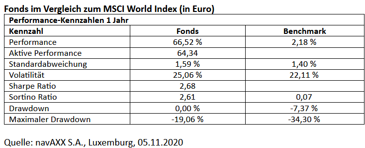 Mit einer sehr flexiblen Strategie und der Abkehr von der klassischen Diversifikation über Anlageklassen sowie Länder und Regionen ist dem Multi-Axxion – Concept Fonds (WKN A1XBKY) der Sprung auf den ersten Platz unter 1.349 flexiblen Mischfonds über 1 Jahr gelungen.[1]