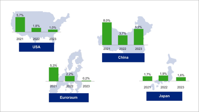 Veränderung des realen Bruttoinlandsproduktes im Vergleich zum Vorjahr
