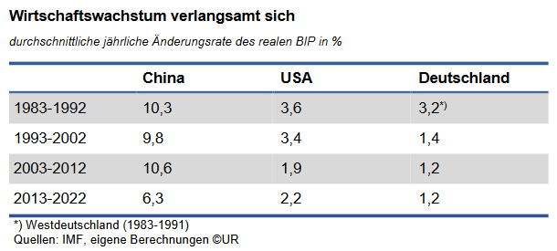 Zudem hat sich die Regierung in Peking, beeindruckt durch die westlichen Wirtschaftssanktionen gegen Russland, die De-Globalisierung auf die Fahnen geschrieben und versucht vor allem im Tech-Bereich Autonomie zu erreichen. Dieser Strukturwandel vermindert schon jetzt den Produktivitätsfortschritt und damit das Wachstum des Produktionspotenzials.